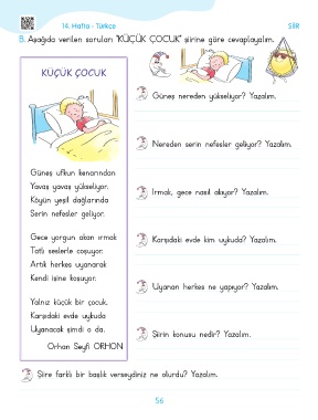 B. Aşağıda verilen soruları ‘‘KÜÇÜK ÇOCUK’’ şiirine göre cevaplayalım.