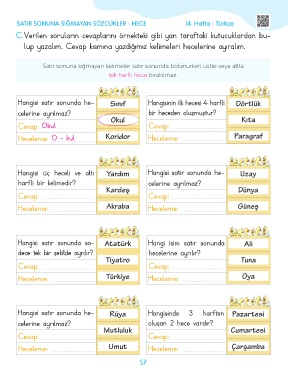 SATIR SONUNA SIĞMAYAN SÖZCÜKLER - HECE 14. Hafta - Türkçe