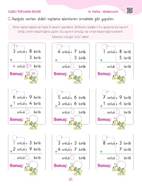C. Aşağıda verilen eldeli toplama işlemlerini örnekteki gibi yapalım.