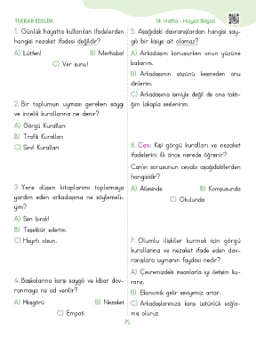 TEKRAR EDELİM 14. Hafta - Hayat Bilgisi