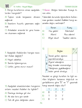 8. Görgü kurallarının amacı aşağıdaki- 11. Kenan: Aldığım bisküviden Kuzey’e ik-