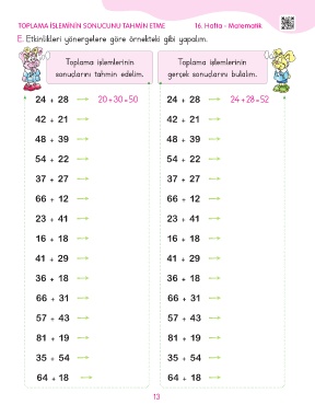 TOPLAMA İŞLEMİNİN SONUCUNU TAHMİN ETME 16. Hafta - Matematik