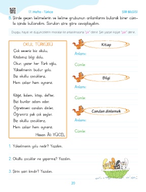 le içinde kullanalım. Soruları şiire göre cevaplayalım.