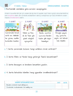 c. 3. kartta benzeyeni ve kendisine benzetileni yazalım.
