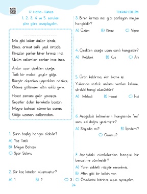 1, 2, 3, 4 ve 5. soruları 3. Birer kırmızı inci gibi parlayan meyve