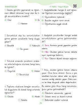 TEKRAR EDELİM 17. Hafta - Hayat Bilgisi