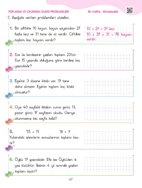 TOPLAMA VE ÇIKARMA İŞLEMİ PROBLEMLERİ 18. Hafta - Matematik