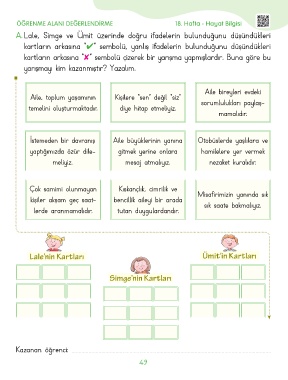 ÖĞRENME ALANI DEĞERLENDİRME 18. Hafta - Hayat Bilgisi
