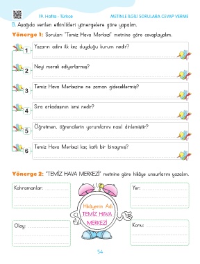 Yönerge 1: Soruları “Temiz Hava Merkezi” metnine göre cevaplayalım.