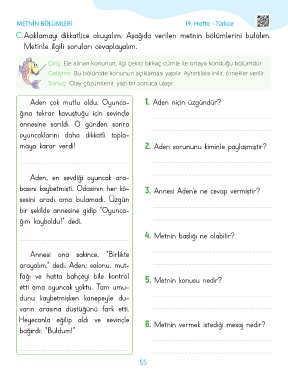Aden çok mutlu oldu. Oyunca- 1. Aden niçin üzgündür?