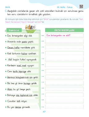 C. Aşağıdaki cümlelerde geçen altı çizili sözcükleri bulmak için sorulması gere-