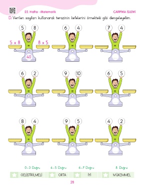 D. Verilen sayıları kullanarak terazinin kefelerini örnekteki gibi dengeleyelim.
