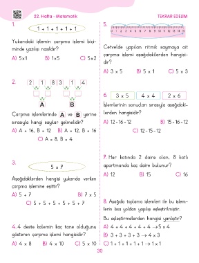 C) 5 + 5 + 5 + 5 + 5 + 7 8. Aşağıda toplama işlemleri ile bu işlem-