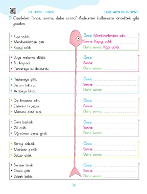 D. Cümleleri “önce, sonra, daha sonra” ifadelerini kullanarak örnekteki gibi