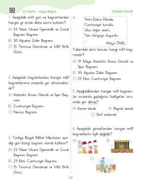 2. Aşağıdaki bayramlardan hangisi millî C) 29 Ekim Cumhuriyet Bayramı