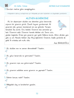 4. Ali, güvercini saldıktan sonra güvercin ne yapmıştır? Yazalım.