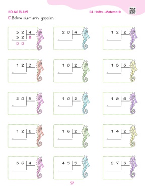 BÖLME İŞLEMİ 24. Hafta - Matematik C. Bölme işlemlerini yapalım. 3 2 4 2 0 4 1 2 2 - 3 2 8 - - 0 0 1 2 3 1 8 2 1 5 5 - - - 2 0 5 1 0 2 1 8 6 - - - 1 2 6 1 6 2 1 4 2 - - - 3 6 4 4 5 5 2 7 3 - - - 57