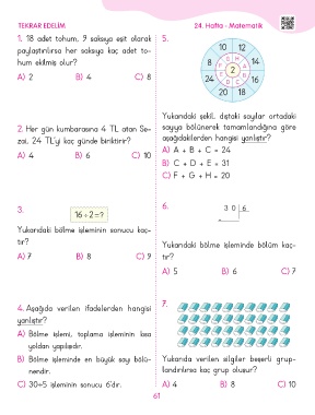 2. Her gün kumbarasına 4 TL atan Se- sayıya bölünerek tamamlandığına göre