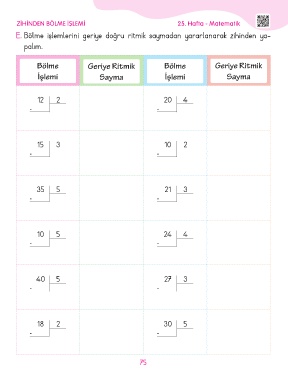 ZİHİNDEN BÖLME İŞLEMİ 25. Hafta - Matematik