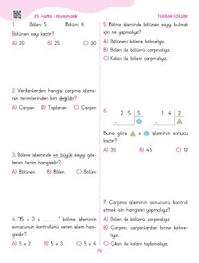 1. Bölen: 5 Bölüm: 6 5. Bölme işleminde bölünen sayıyı bulmak
