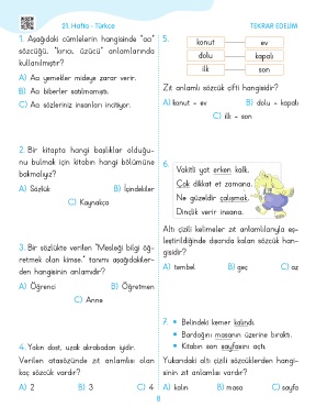 1. Aşağıdaki cümlelerin hangisinde “acı” 5. konut ev