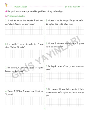 1. 4 katlı bir okulun her katında 5 sınıf var- 5. Günde 4 sayfa okuyan Firuze bir hafta-