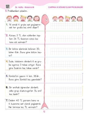 26. Hafta - Matematik ÇARPMA VE BÖLME İŞLEMİ PROBLEMLERİ