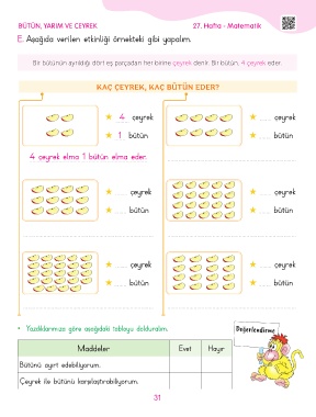 BÜTÜN, YARIM VE ÇEYREK 27. Hafta - Matematik