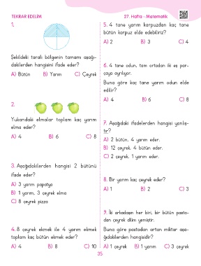 A) 4 B) 8 C) 10 A) 1 çeyrek B) 1 yarım C) 3 çeyrek