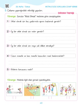 Yönerge: Soruları “Atlet Olmak” metnine göre cevaplayalım.