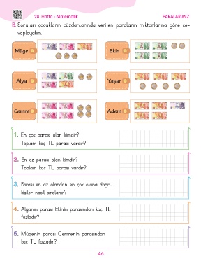 B. Soruları çocukların cüzdanlarında verilen paraların miktarlarına göre ce-