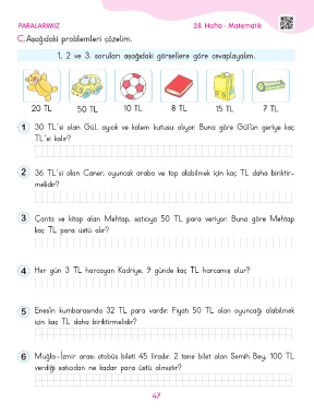2 36 TL ’ si olan Caner, oyuncak araba ve top alabilmek için kaç TL daha biriktir-