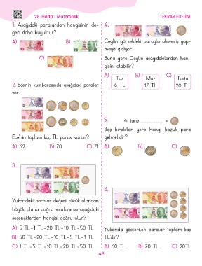 2. Ece’nin kumbarasında aşağıdaki paralar 6 TL 17 TL 20 TL