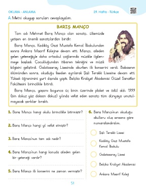 1. Barış Manço hangi okulu birincilikle bitirmiştir? 6. Barış Manço’nun okuduğu