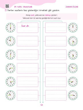D. Verilen saatlerin kaçı gösterdiğini örnekteki gibi yazalım.