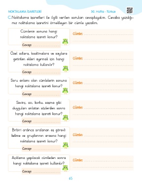 C. Noktalama işaretleri ile ilgili verilen soruları cevaplayalım. Cevaba yazdığı-