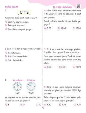 1. 4. Mert, hafta sonu ödevlerini sabah saat