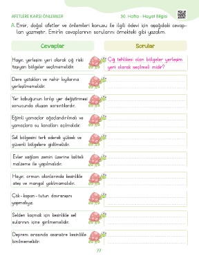 AFETLERE KARŞI ÖNLEMLER 30. Hafta - Hayat Bilgisi