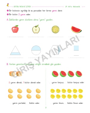BÜTÜN, YARIM VE ÇEYREK 27. Hafta - Matematik