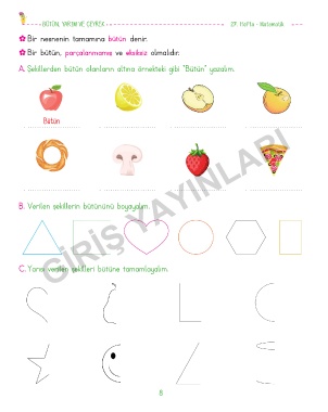 A. Şekillerden bütün olanların altına örnekteki gibi "Bütün” yazalım.