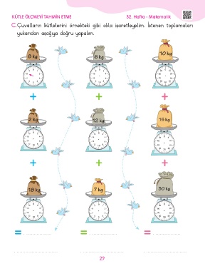 C. Çuvalların kütlelerini örnekteki gibi okla işaretleyelim. İstenen toplamaları