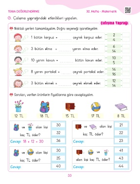 TEMA DEĞERLENDİRME 32. Hafta - Matematik