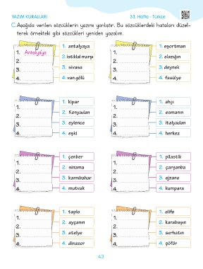 C. Aşağıda verilen sözcüklerin yazımı yanlıştır. Bu sözcüklerdeki hataları düzel-