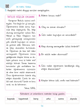 B. Aşağıdaki metni okuyup soruları cevaplayalım.