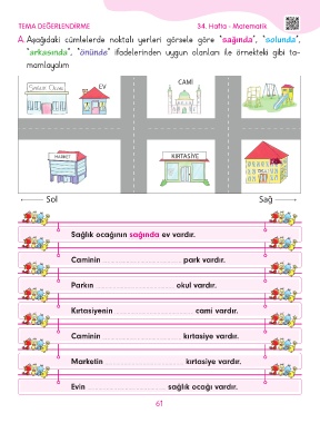 A. Aşağıdaki cümlelerde noktalı yerleri görsele göre "sağında”, "solunda”,
