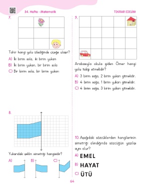 B) İki birim yukarı, bir birim sola Arabasıyla okula giden Ömer hangi