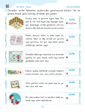 görsele karşılık gelen kelimeyi örnekteki gibi yazalım.
