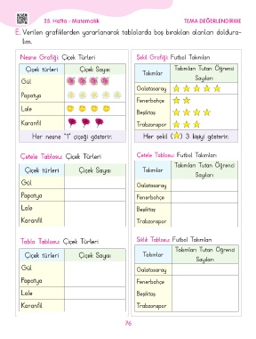 E. Verilen grafiklerden yararlanarak tablolarda boş bırakılan alanları doldura-