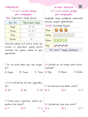 A) Kayak B) Yüzme C) Tenis A) Silgi B) Kalem C) Defter
