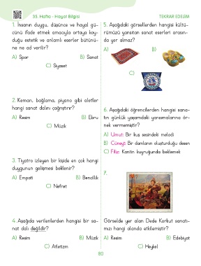 1. İnsanın duygu, düşünce ve hayal gü- 5. Aşağıdaki görsellerden hangisi kültü-